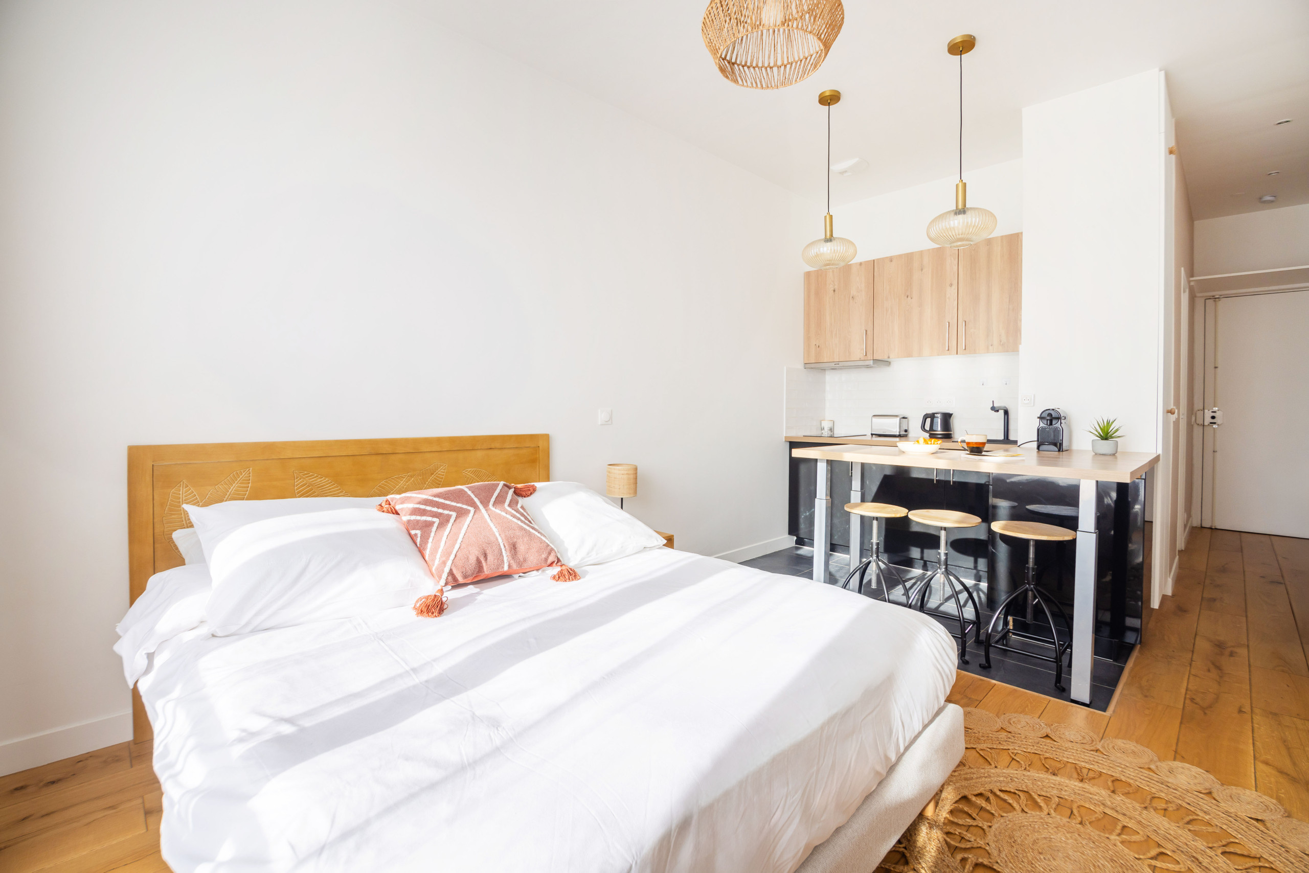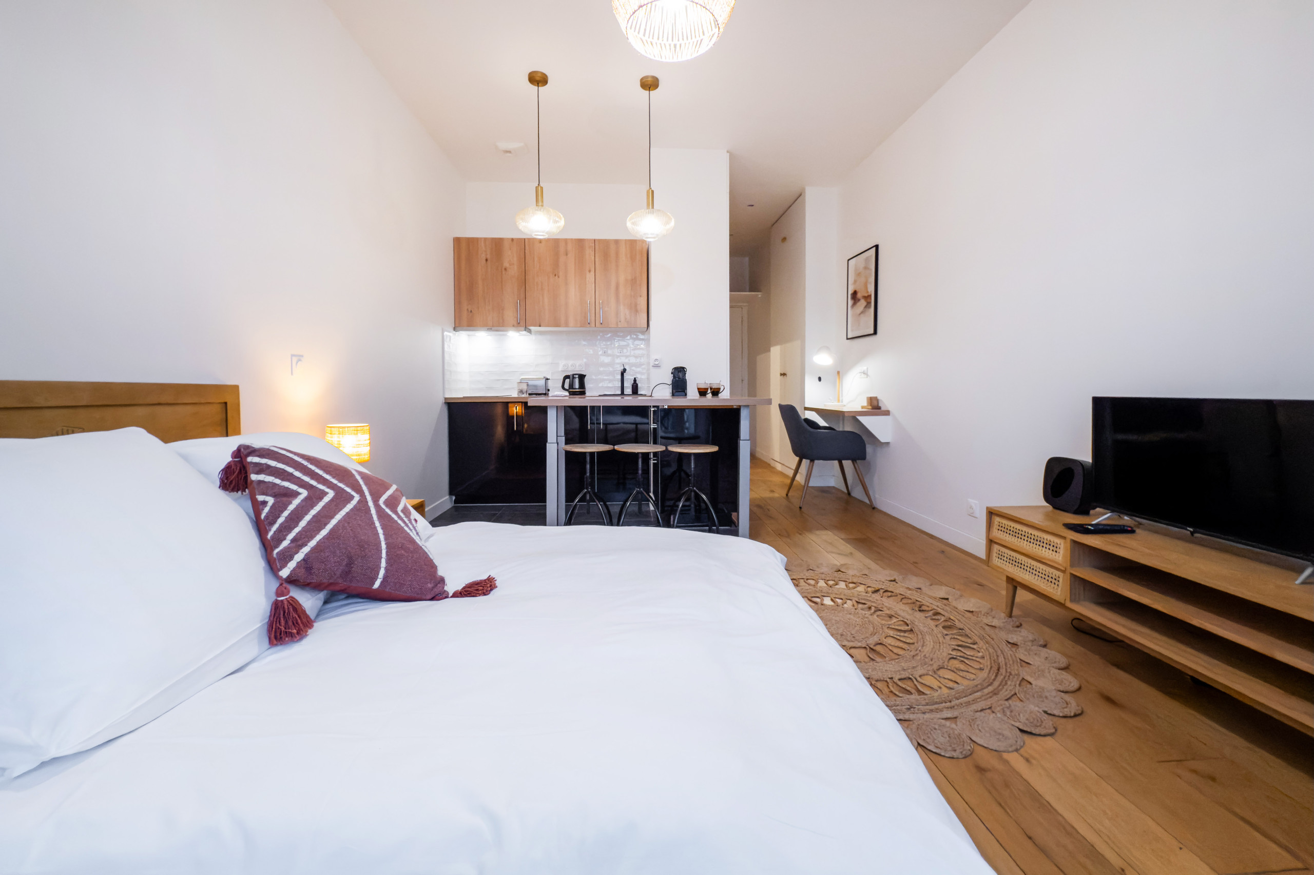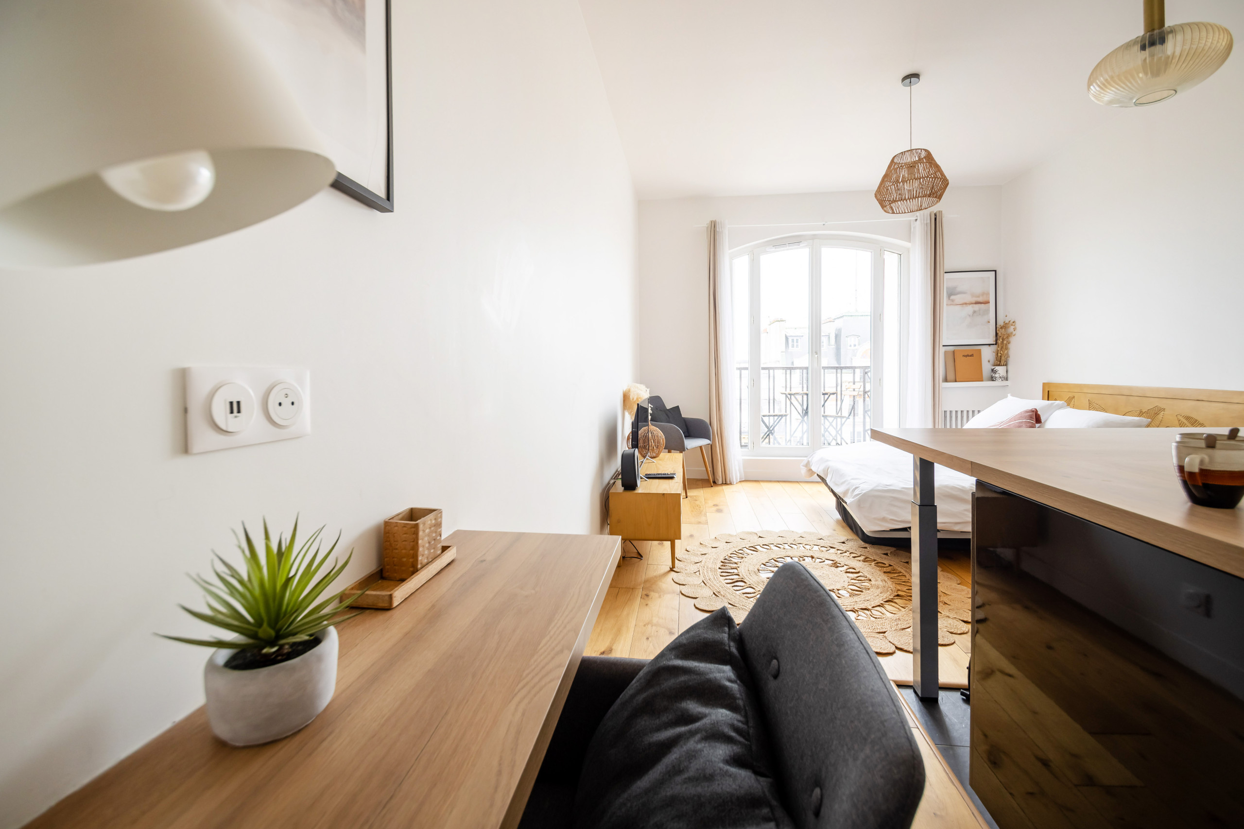 Bem-vindo(a) a este estúdio perfeitamente planejado, ideal para uma estadia confortável no coração de Paris. Localizado no segundo andar de um prédio parisiense típico (sem elevador), ele oferece um ambiente acolhedor e funcional. O estúdio conta com uma cama Queen Size com excelente colchão, garantindo noites tranquilas. O espaço foi otimizado para receber tanto viajantes solos quanto casais ou hóspedes a trabalho.
