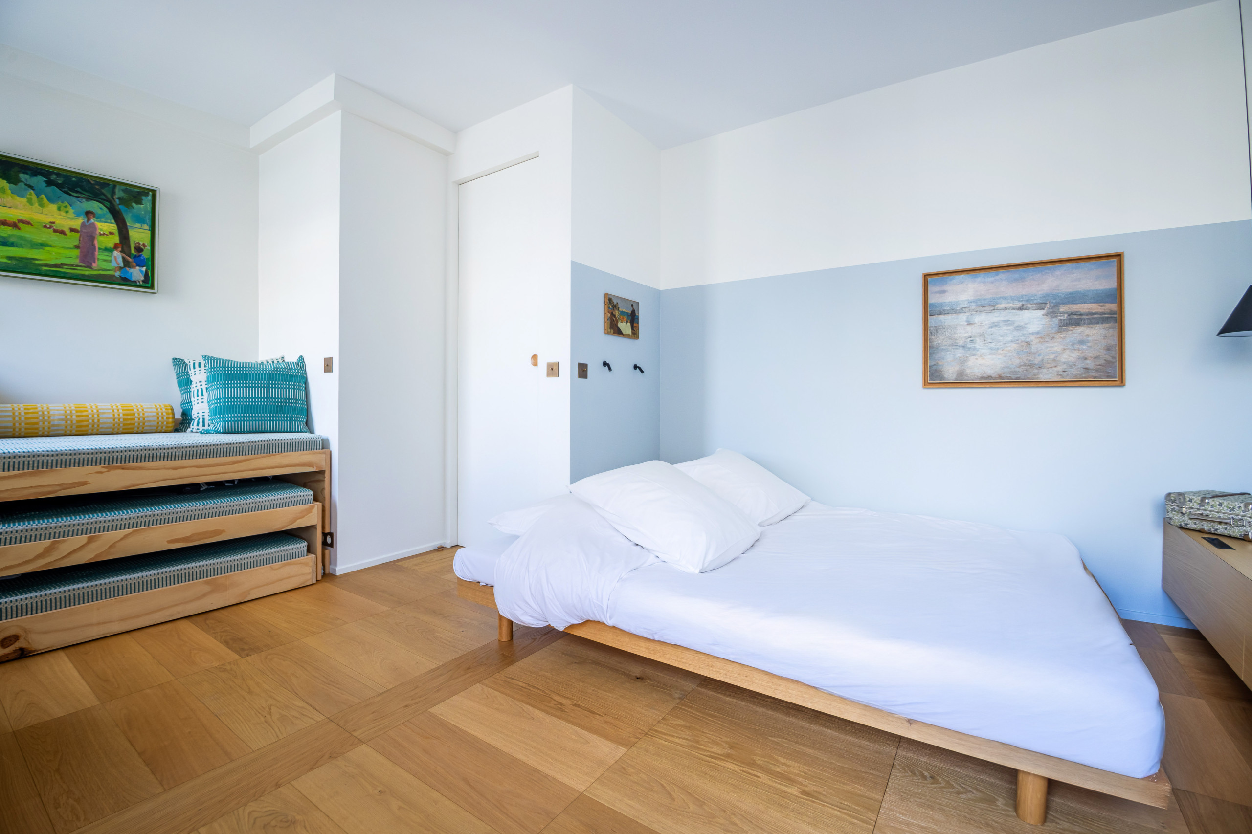 O apartamento se destaca por sua decoração original, realçando o piso em parquet e os ornamentos, adicionando um toque de elegância e charme. É um espaço ideal para relaxar após um dia agitado explorando as maravilhas de Paris.