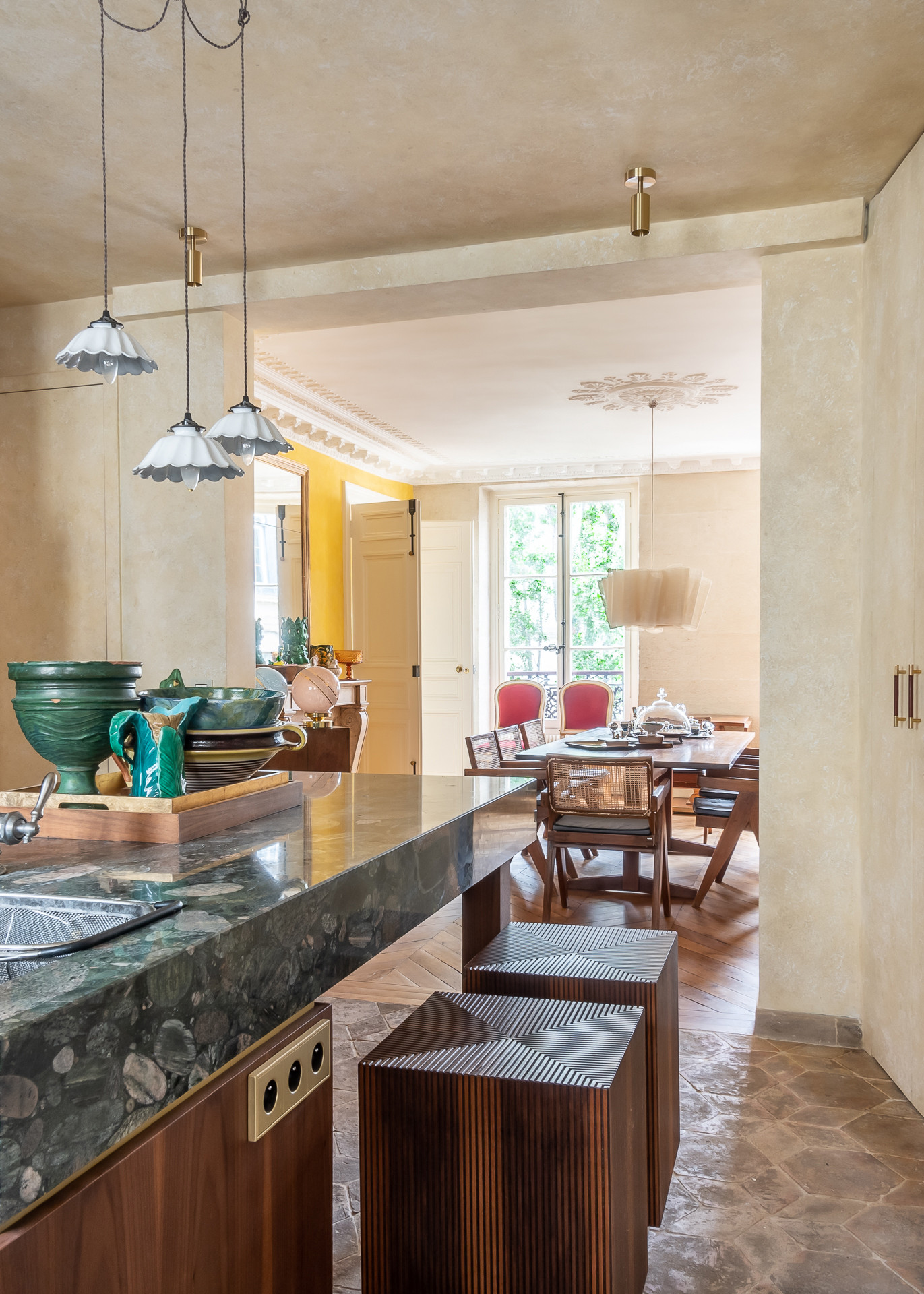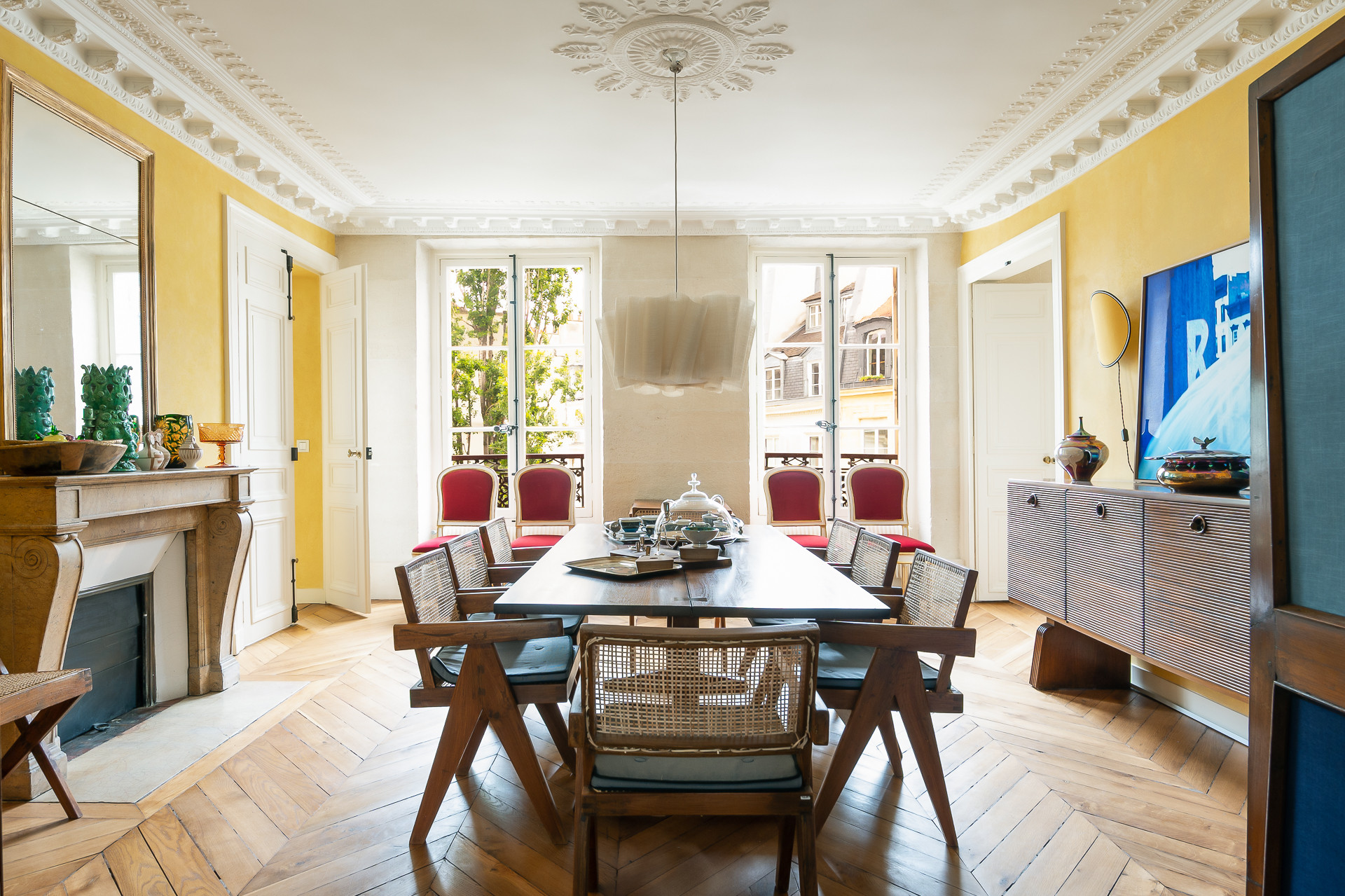 Idealmente localizado no coração do famoso bairro Saint-Germain-des-Prés, este elegante apartamento de 160 m² reflete todo o charme parisiense. Situado no 4º andar de um belo edifício com pequeno elevador, o espaço combina o encanto histórico com uma atmosfera artística única.