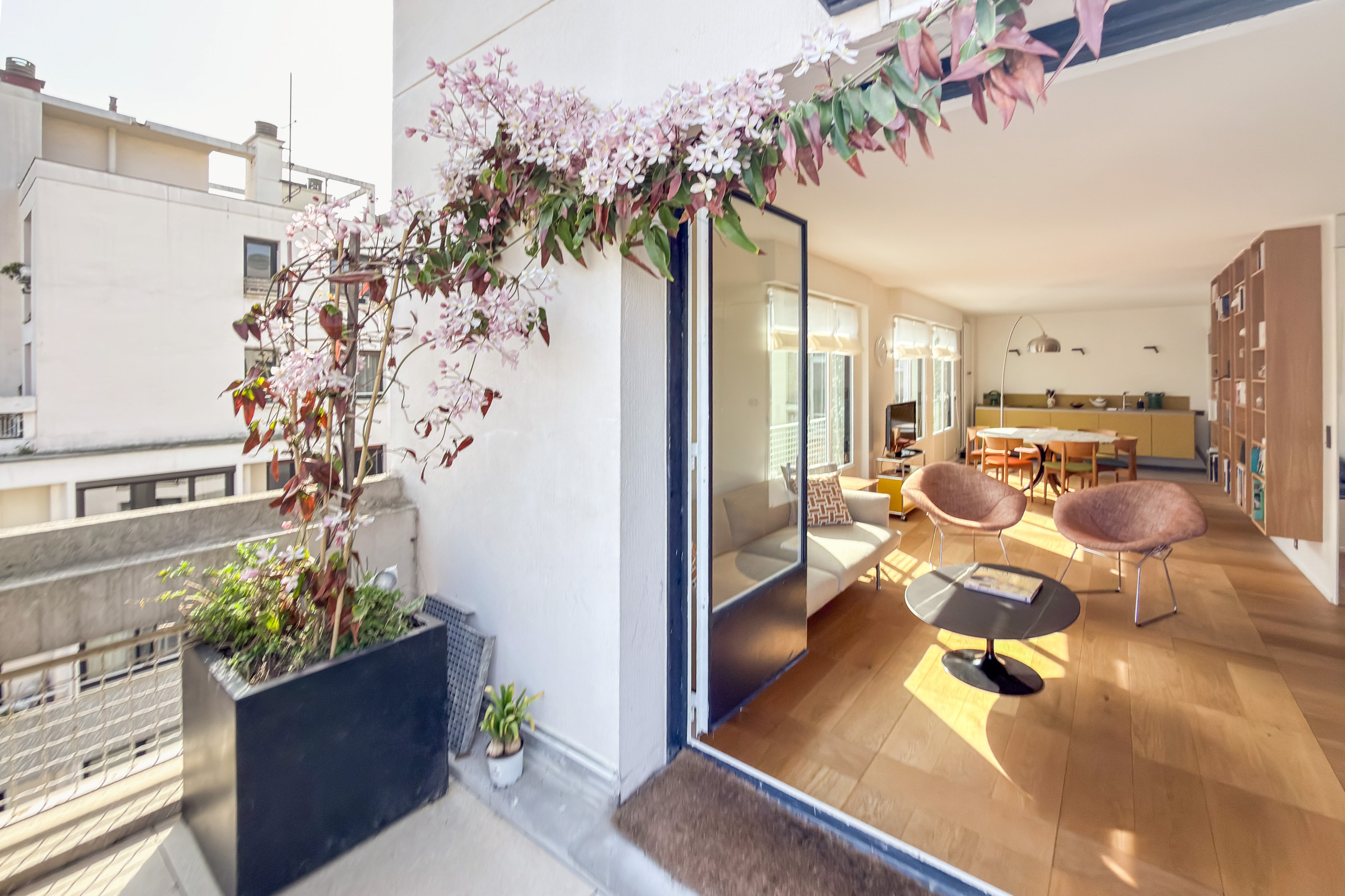 The standout feature is the exceptional 430 sq ft terrace — a rare find in Paris — offering an open view toward Montparnasse. It’s the perfect spot to enjoy breakfast in the sun, dine outdoors, or unwind in the evening after a day exploring the city.