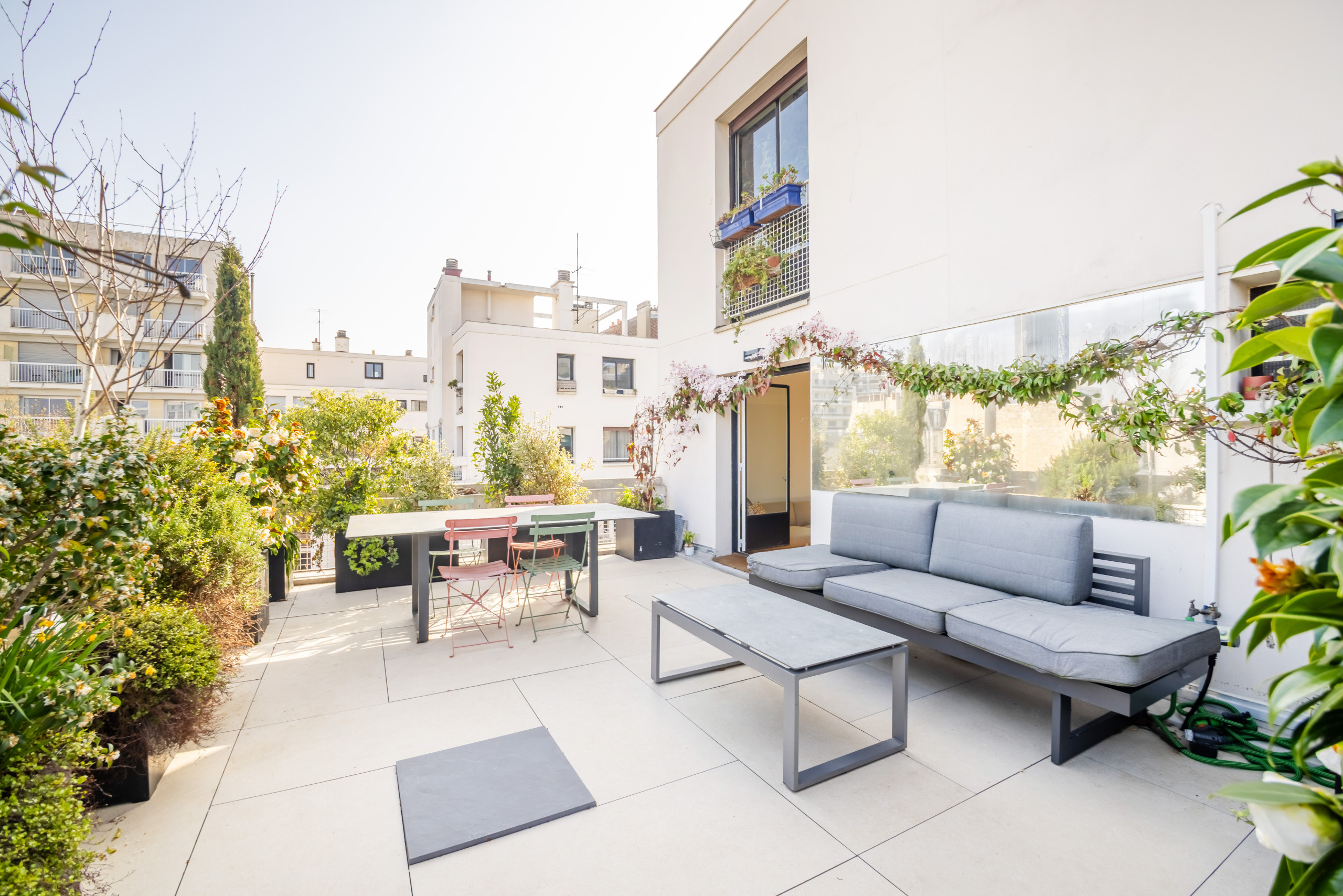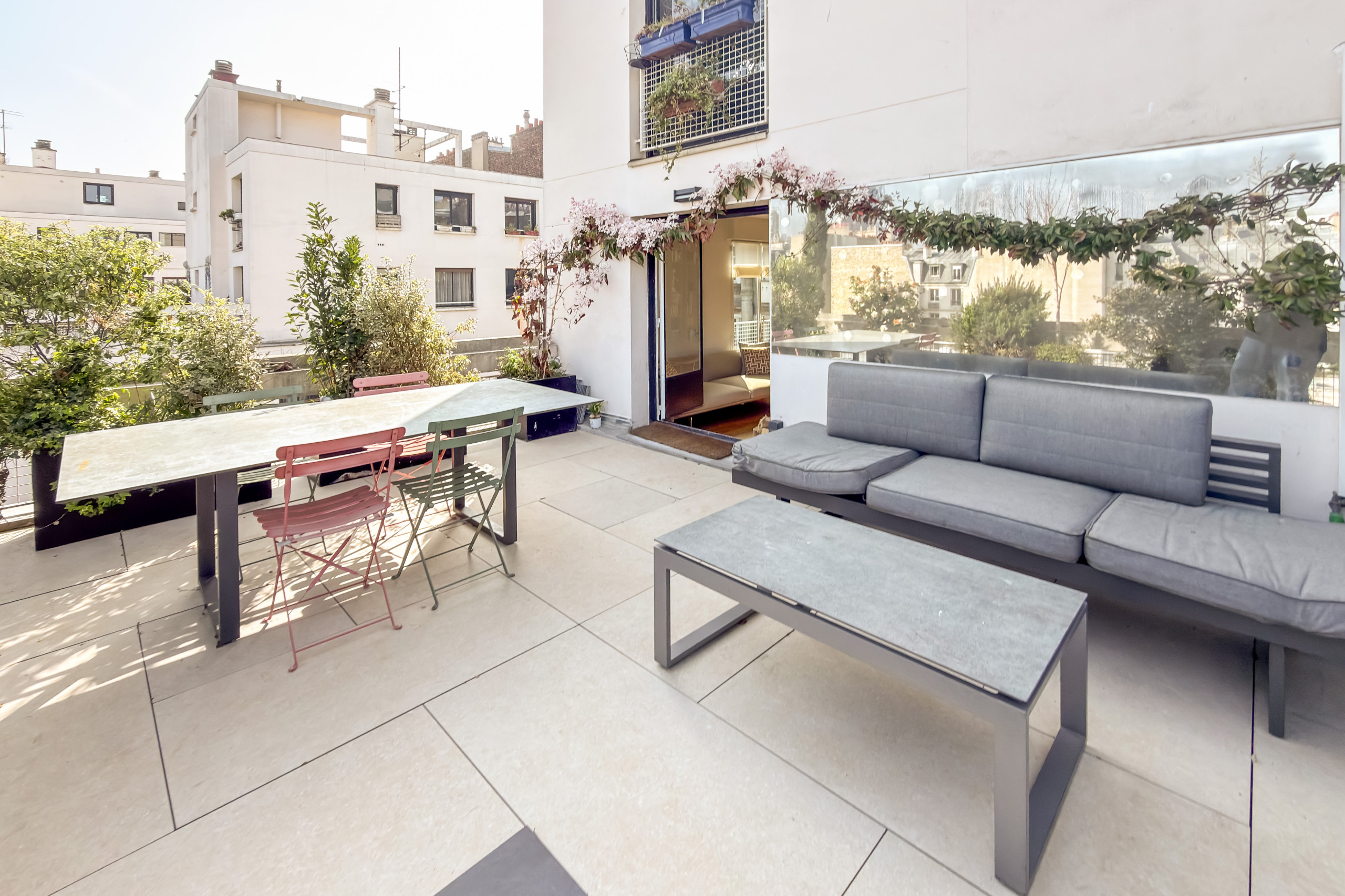 This apartment combines design, functionality, and an exceptional outdoor space for a comfortable Parisian stay, whether traveling with family, friends, or for business.