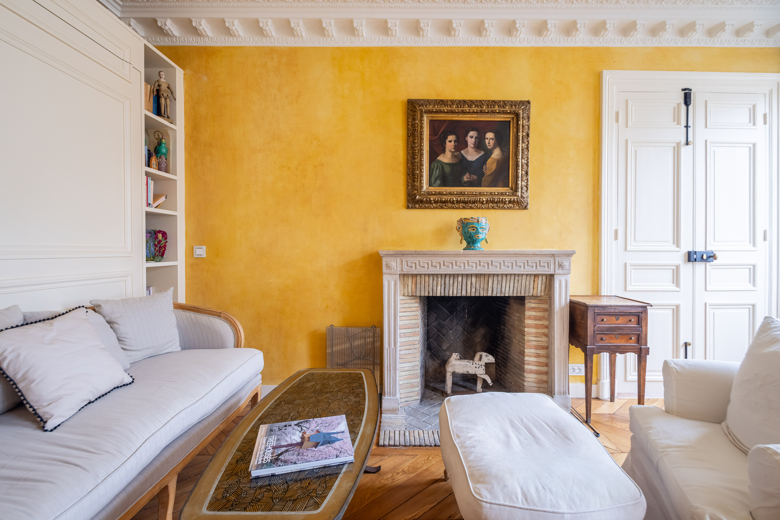 Hardwood floors, ornate mouldings, decorative fireplaces, and preserved cobblestone details pair beautifully with curated artworks and designer furniture, creating a space that feels both sophisticated and inspiring.
