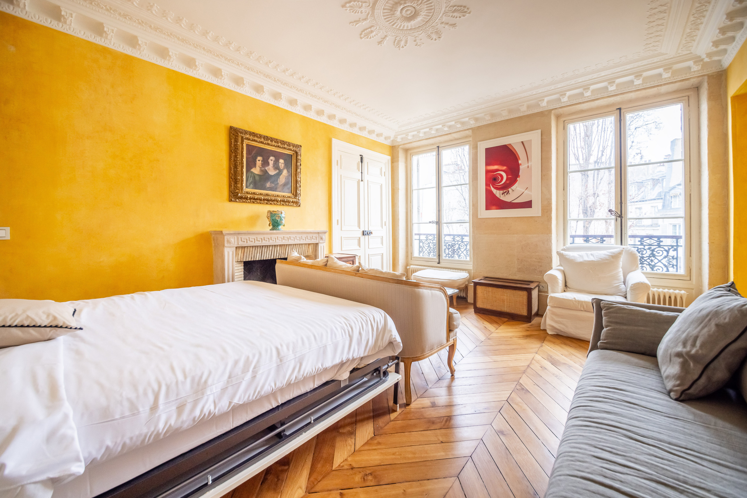 Designed for four adults and two children (or up to six adults), the apartment offers high-speed fibre internet and all the comforts of a modern home. With its prime location, inviting atmosphere, and elegant charm, it’s truly a rare find in the heart of Paris, just steps away from the cafés, galleries, and boutiques of Saint-Germain-des-Prés.